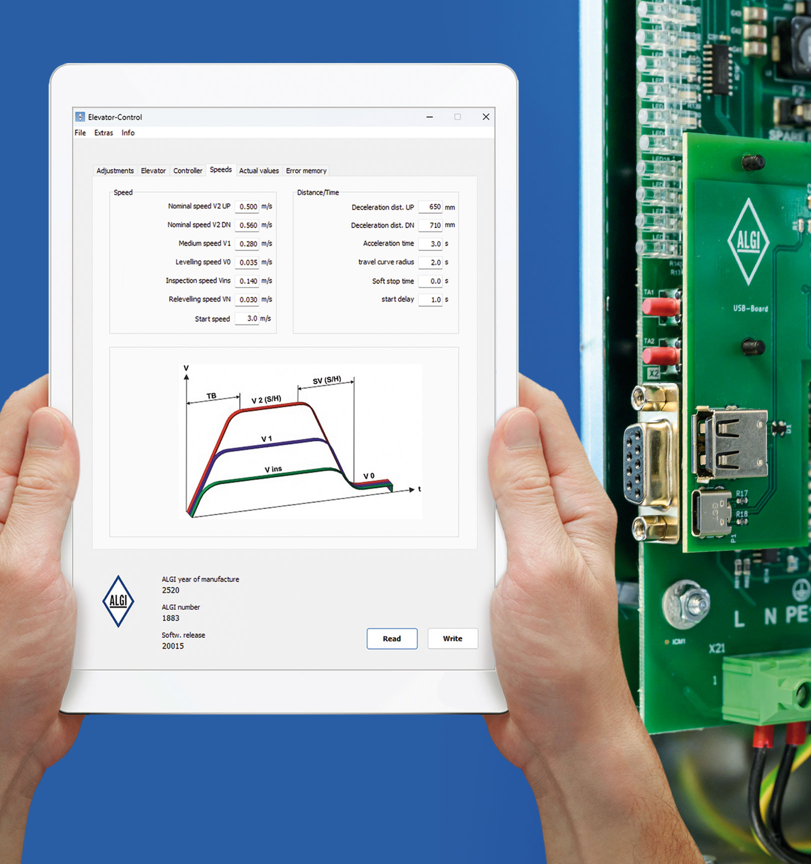 - Optimised and simple adjustment of the travel curve in both travel directions via the ELCON control card